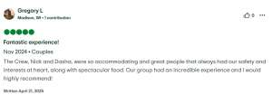 The Crew, Nick and Dasa, were so accommodating and great people that always had our safety and interests at heart, along with spectacular food. Our group had an incredible experience and I would highly recommend!
