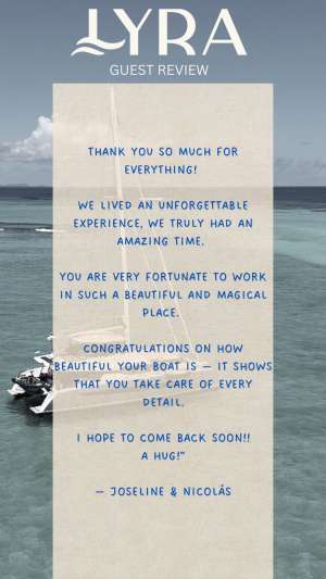 “The best catamaran, entertaining and full of surprises and things I will never forget.”