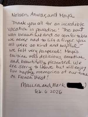 Thank you for an unforgettable trip and showing us the best of the Grenadines. From hidden bays to giant lobsters we
