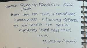 Captain Pancho and Ollie, thank you for such a memorable honeymoon in/around St Barts! We will cherish the special moments. Until next time!