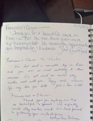 Francisco and Olivia, Thank you for an incredible honeymoon! We will always remember our sunrise hikes, sea turtles, and happy hours. Thank you for showing us the magic of St Barts! With Love, Dana and Ben