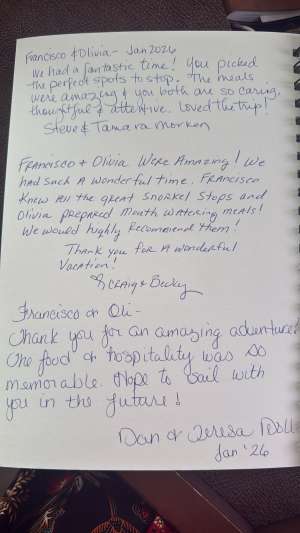 Francisco and Olivia Were Amazing! We had Such a wonderful time. Francisco knew til the great Snorkel Stops and Olivia prepared mouth watering meals!