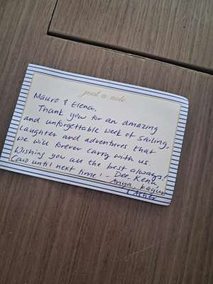 Thank you so much Captain Mauro and Chef Elena for a wonderful and unforgettable experience. We couldn't have asked for a more amazing crew! I had so much fun watching the animals and the food was so so good. Thank you for teaching us how to be Navy Seals!!