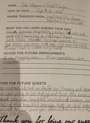 A week aboard the Adara with captain Dmitri, deckhand and concierge Philip, and the amazing chef Penelope was an absolute dream. Our broker took a LOT of time making sure to find a good match for our 25th anniversary on the Aegean Sea, our first charter, sailing to beaches and ports on the Greek islands. It was just the two of us on a catamaran that holds up to eight guests, so we had plenty of room and it seemed that the crew was happy to have only two guests for the week. We were flexible with our itinerary and trusted the captain, which kept us away from windy weather further to the south around Santorini. We saw the most beautiful sunsets (and a moonrise!), swam the clearest water, ate the most delicious food. We are ruined for future vacations, addicted to chartering.