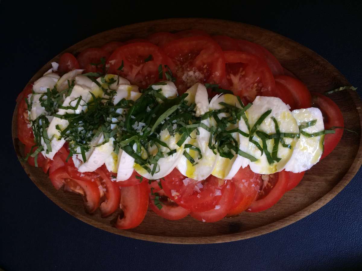 Cherry tomato and olive bruschetta - add buffalo mozzarella (optional)